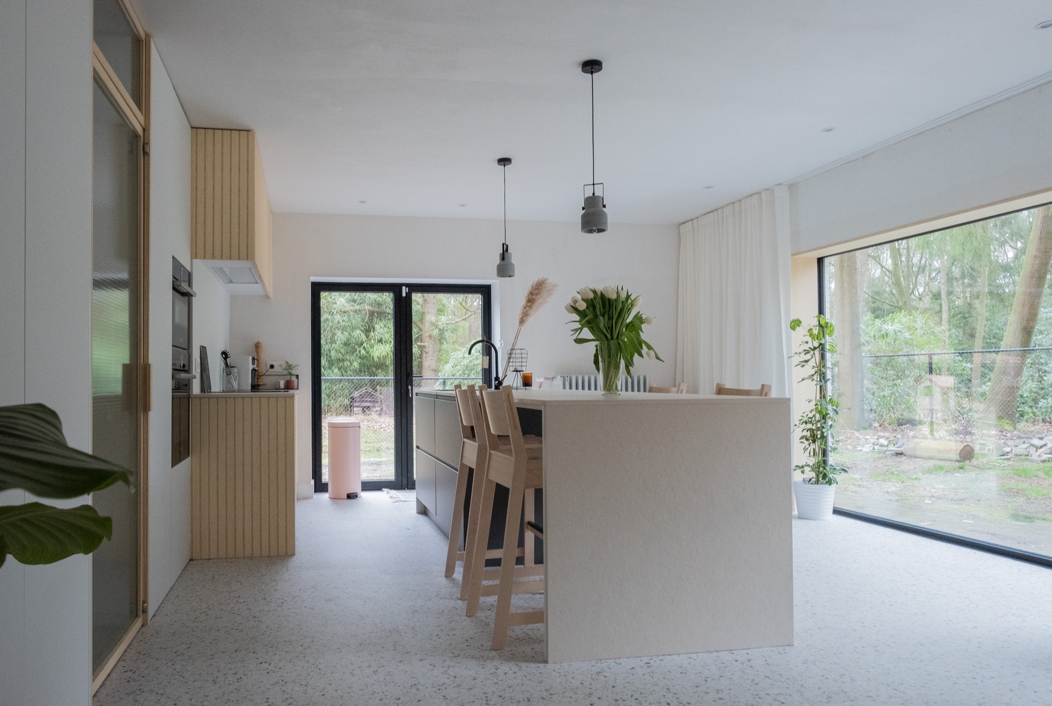 We wilden eerst tegels maar ik ben geen fan van voegen. Daarnaast is onze keuken onderkelderd dus zochten we iets wat warmer zou aanvoelen aan onze voeten
