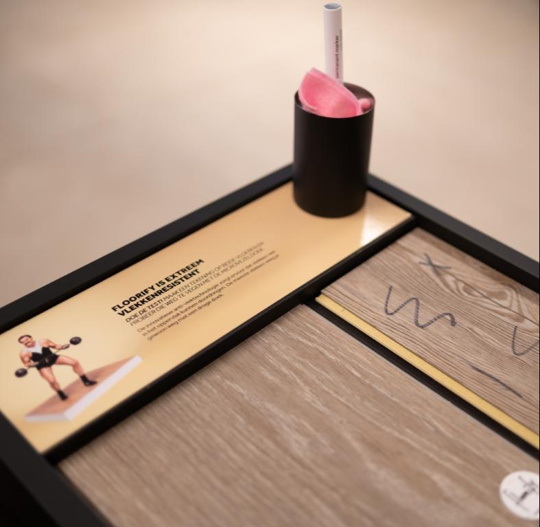 We geloven meer dan ooit in een persoonlijke, lokale merkbeleving. Consumenten kunnen aan de hand van interactieve testjes de vele voordelen van een Floorify vloer zelf ontdekken. Daarnaast kunnen ze hun favoriete vloeren zien én voelen op groot oppervlak! En niet te vergeten … worden ze met een brede glimlach verwelkomd door Conny.